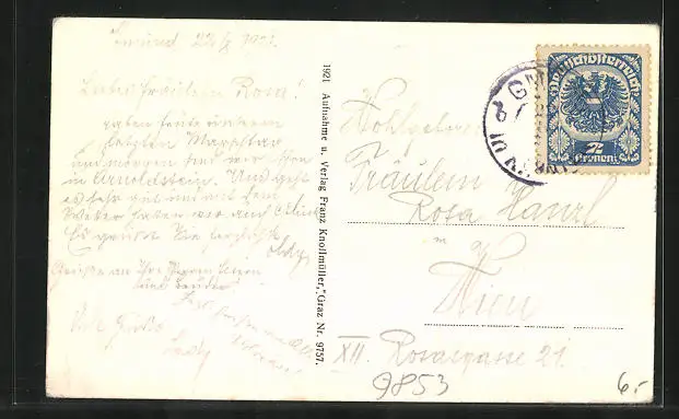 alte Ansichtskarte, gelaufen 1921, Eckknicke unten, guter Zustand