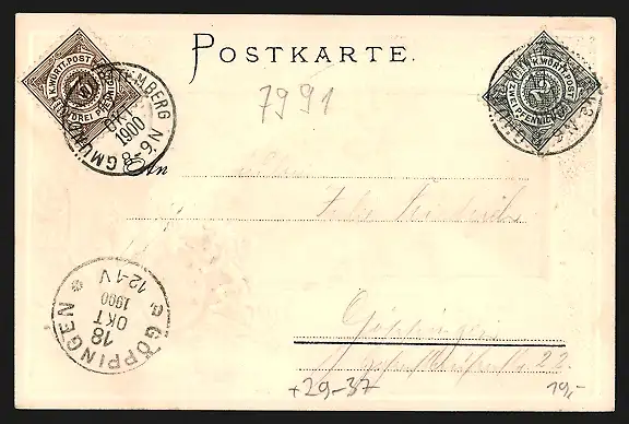 alte Ansichtskarte, gelaufen 1900, guter Zustand