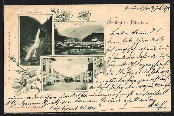 AK Gmünd in Kärnten, Teilansicht, Platz, Hochalpenfall