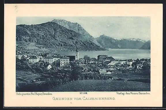 AK Gmunden, Ortsansicht vom Calvarienberg