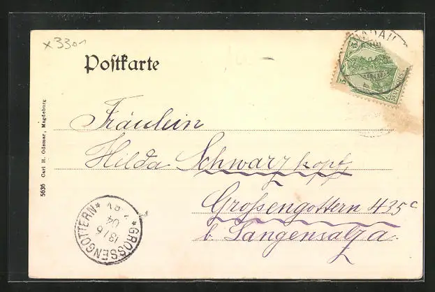 alte Ansichtskarte, gelaufen 1904, Stempelspur, guter Zustand