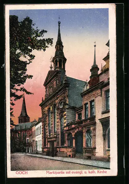 AK Goch, Marktpartie mit evangel. u. kath. Kirche
