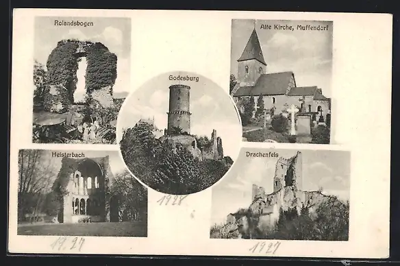 AK Godesberg, Ansichten vom Ort, Drachenfels, Godesburg, Rolandsbogen