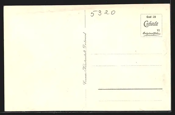 Personenbezogene Daten auf der Rückseite der Karte wurden durch blauen Textmarker unkenntlich gemacht. Die blauen Stellen sind auf die Vorderseite durchgeweicht und wirken sich negativ auf das Postkartenfoto aus