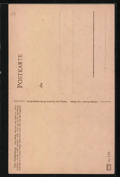 Personenbezogene Daten auf der Rückseite der Karte wurden durch blauen Textmarker unkenntlich gemacht. Die blauen Stellen sind auf die Vorderseite durchgeweicht und wirken sich negativ auf das Postkartenfoto aus