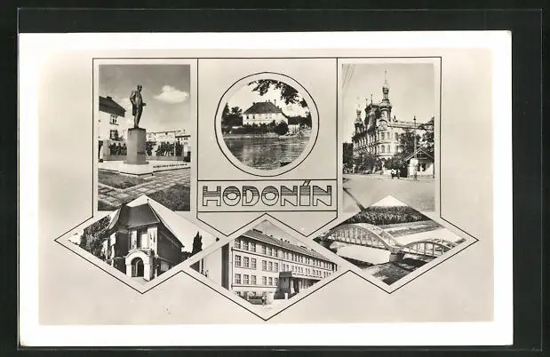 AK Göding / Hodonin, Gebäudeansicht, Brücke, Denmal