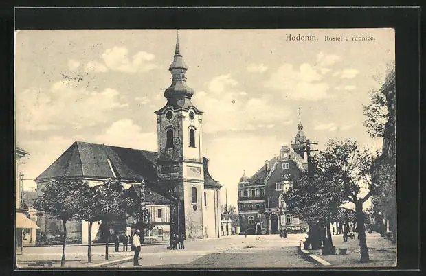 AK Göding / Hodonin, Kostel a radnice