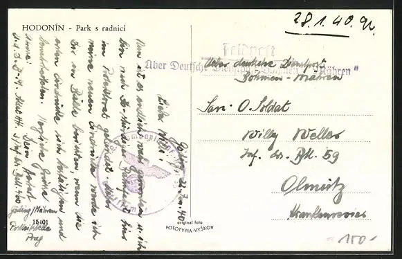 alte Ansichtskarte, gelaufen 1940 als Feldpost, guter Zustand