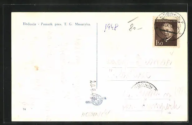 AK Göding / Hodonin, Pomník pres. T. G. Masaryka