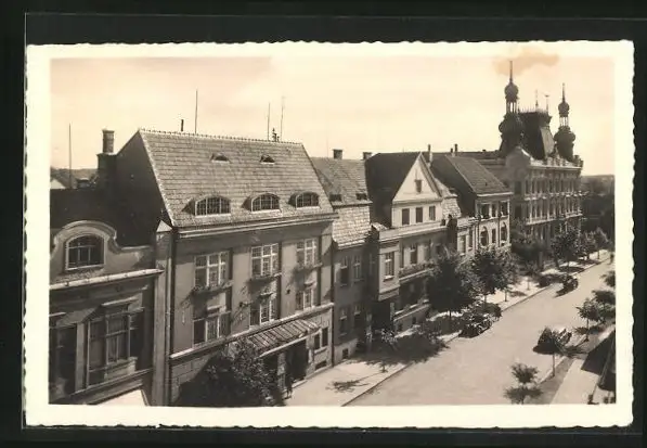 AK Göding / Hodonin, Strassenpartie mit Gebäudeansicht