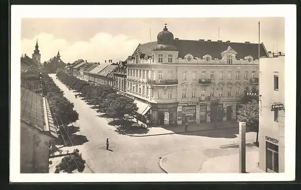 AK Göding / Hodonin, Strassenpartie mit Geschäften