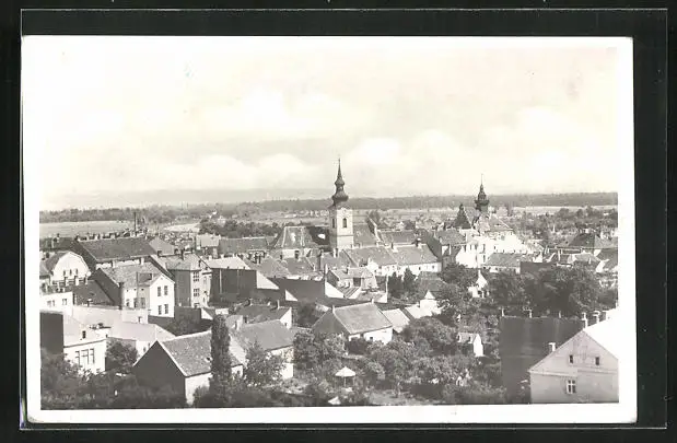 AK Göding / Hodonin, Totalansicht mit Kirche