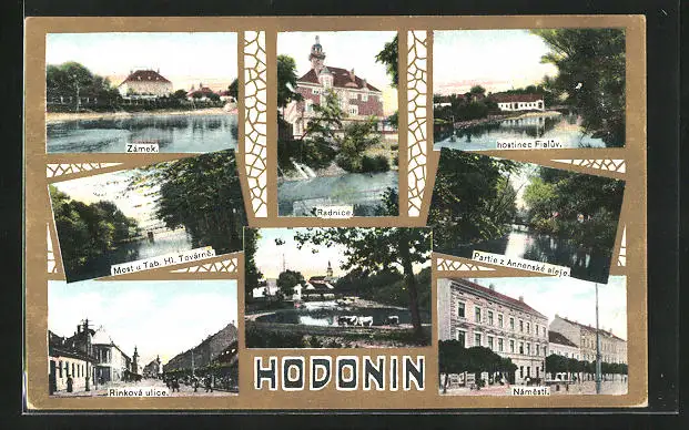 AK Göding / Hodonin, hostinec Fialuv, Radnice, Rinkova ulice