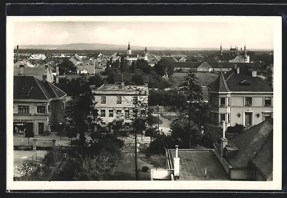AK Göding, Teilansicht mit Fernblick aus der Vogelschau