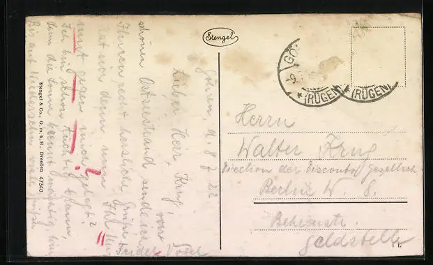 alte Ansichtskarte, gelaufen 1922, Briefmarke entfernt, guter Zustand