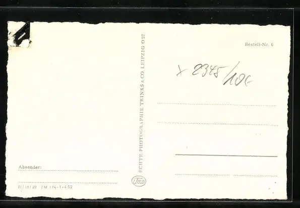 alte Ansichtskarte, ungelaufen, rückseitig Klebe- und Papierreste, guter Zustand