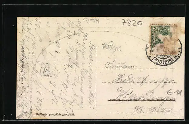 alte Ansichtskarte, gelaufen, Briefmarke entfernt, guter Zustand
