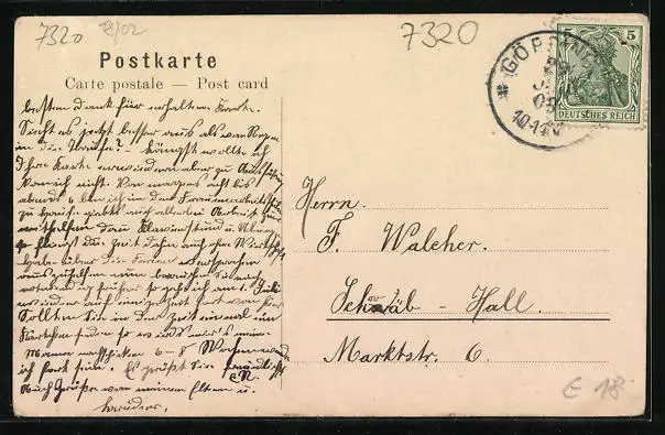 alte Ansichtskarte, gelaufen 1908, guter Zustand