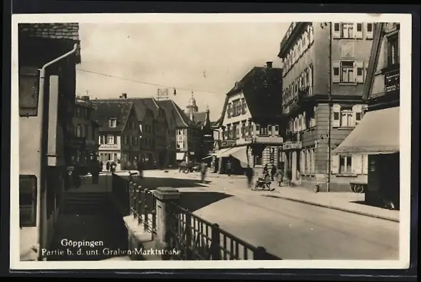 AK Göppingen, Partie b. d. unt. Graben-Marktstrasse