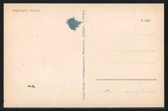 Personenbezogene Daten auf der Rückseite der Karte wurden durch blauen Textmarker unkenntlich gemacht. Die blauen Stellen sind auf die Vorderseite durchgeweicht und wirken sich negativ auf das Postkartenfoto aus