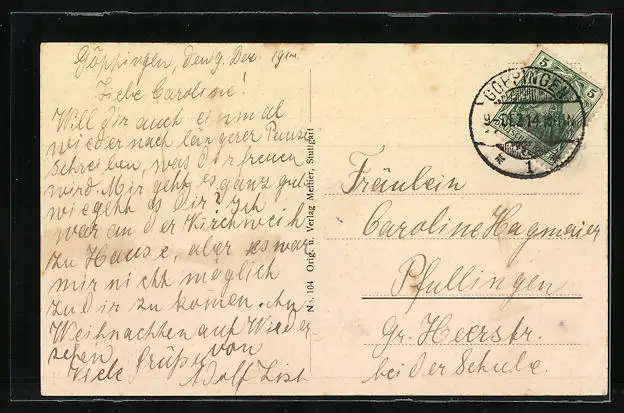 alte Ansichtskarte, gelaufen 1914, guter Zustand