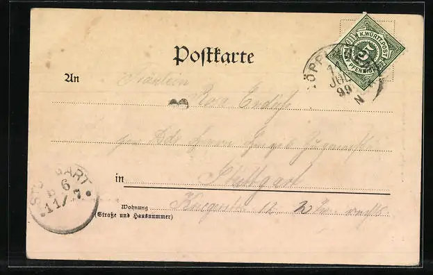 alte Ansichtskarte, gelaufen 1899, guter Zustand