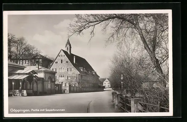 AK Göppingen, Strassenpartie mit Sauerbrunnen