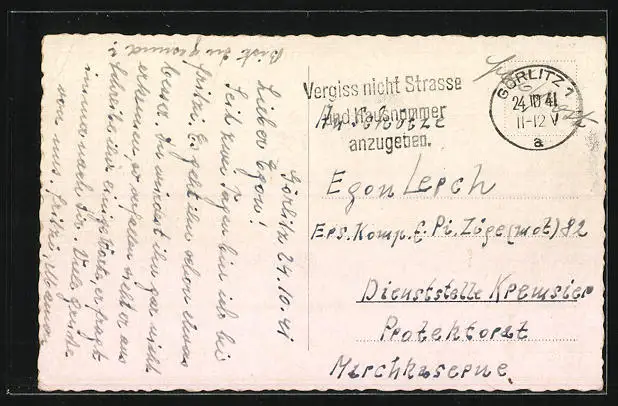 gelaufen 1941, Eckknicke re. oben, guter Zustand