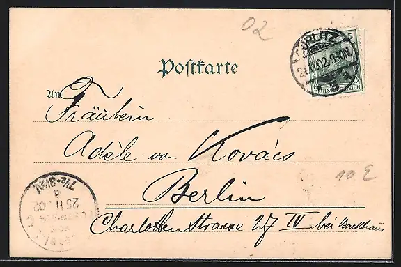 alte Ansichtskarte, gelaufen 1902, guter Zustand