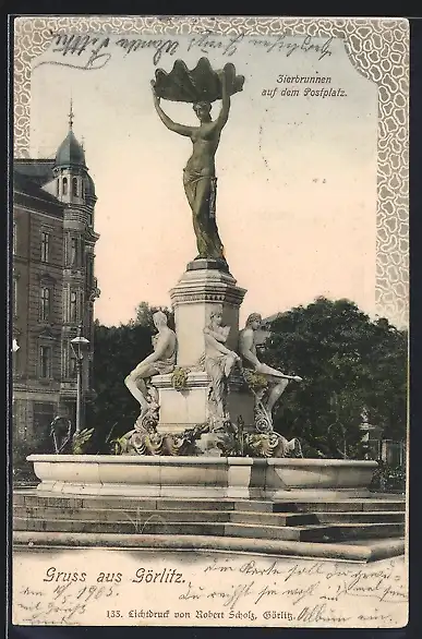 AK Görlitz, Blick auf den Zierbrunnen auf dem Postplatz