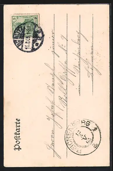 alte Ansichtskarte, gelaufen 1905, Stempelspur, guter Zustand