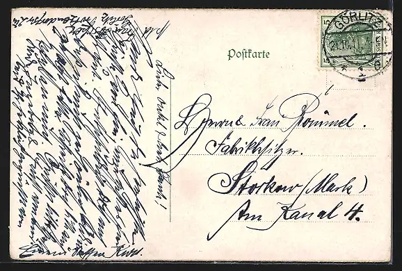 alte Ansichtskarte, gelaufen 1911, Stempelspur, guter Zustand