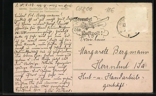 alte Ansichtskarte, gelaufen 1929, Briefmarke entfernt, rückseitig Oberflächenschaden, Stempelspur, Bugspur, guter Zustand