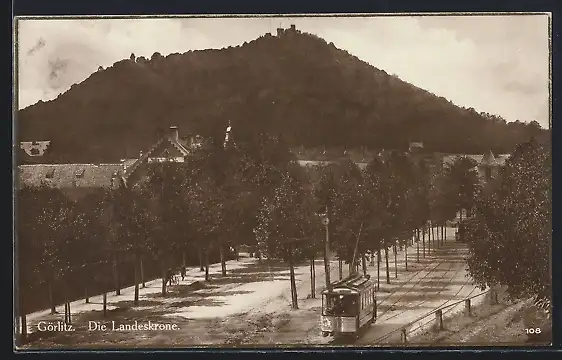 AK Görlitz, Landeskrone mit Strassenbahn