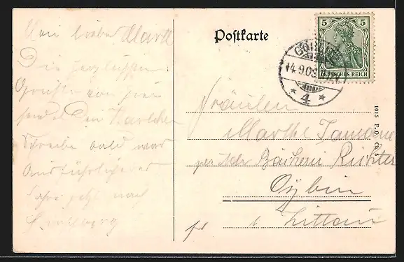 alte Ansichtskarte, gelaufen 1908, guter Zustand