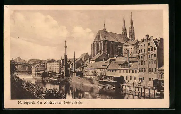 AK Görlitz, Neissepartie der Altstadt mit Peterskirche