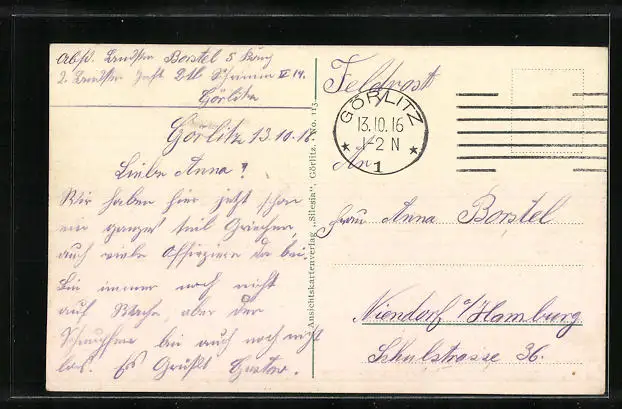 alte Ansichtskarte, gelaufen als Feldpost 1916, guter Zustand