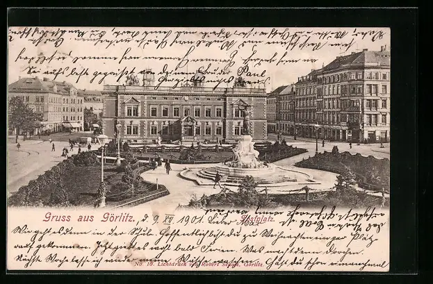 AK Görlitz, Postplatz mit Brunnen
