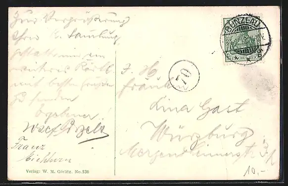 alte Ansichtskarte, gelaufen 1912, Bugspur li. vertikal, guter Zustand
