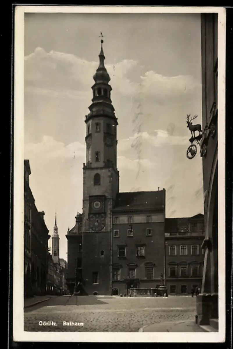 AK Görlitz, Rathaus mit Brunnen