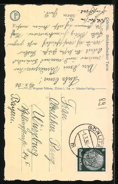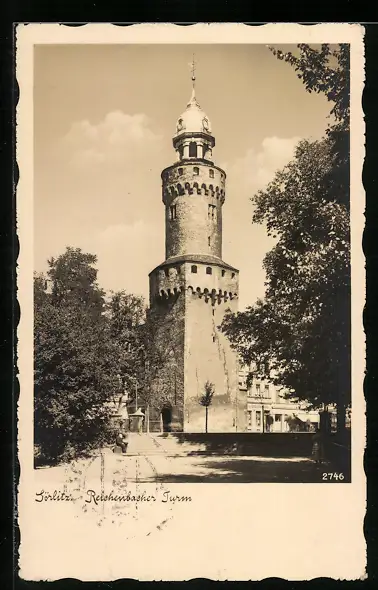 AK Görlitz, Reichenbacher Turm im Sonnenschein