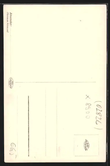 Personenbezogene Daten auf der Rückseite der Karte wurden durch blauen Textmarker unkenntlich gemacht. Die blauen Stellen sind auf die Vorderseite durchgeweicht und wirken sich negativ auf das Postkartenfoto aus