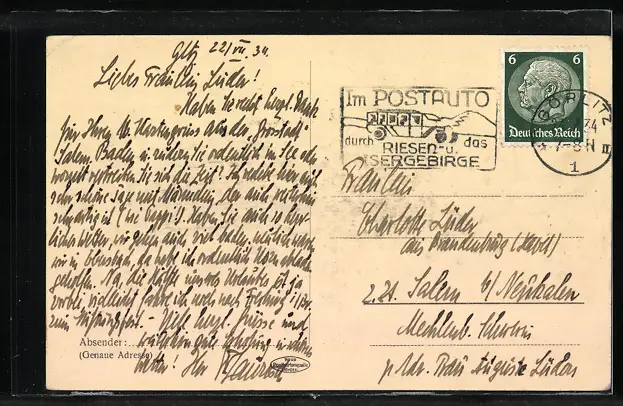 alte Ansichtskarte, gelaufen 1934, Eckknick oben rechts, guter Zustand