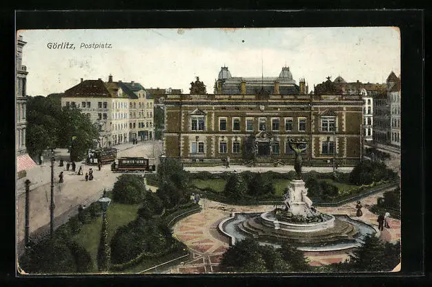 AK Görlitz, Strassenbahnen am Postplatz