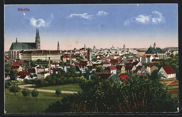AK Görlitz, Teilansicht mit Kirche