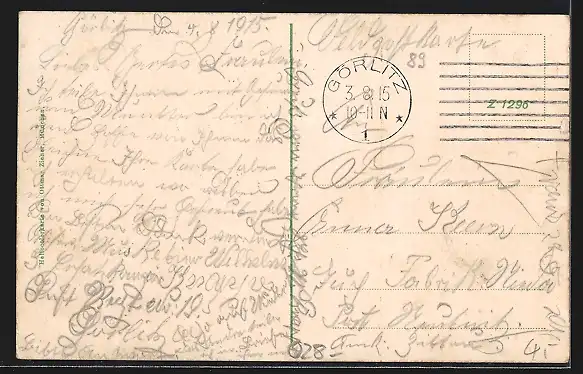 alte Ansichtskarte, gelaufen 1915, Eckknick re. unten, Abriebspur li. oben, guter Zustand