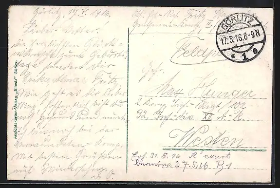 alte Ansichtskarte, gelaufen 1916, guter Zustand