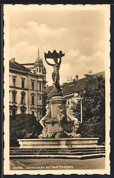 AK Görlitz, Zierbrunnen auf dem Postplatz