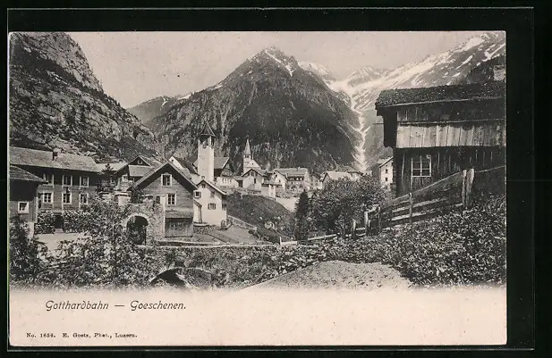 AK Goeschenen, Ansicht des Ortes an der Gotthardbahn