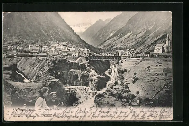 AK Goeschenen /Gotthardbahn, Teilansicht mit Kirche und Brücke